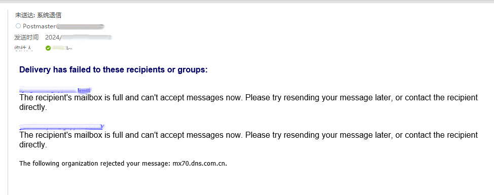 出現(xiàn)這個(gè)退信問(wèn)題首先看看是否有退信,退信內(nèi)容寫的是什么。